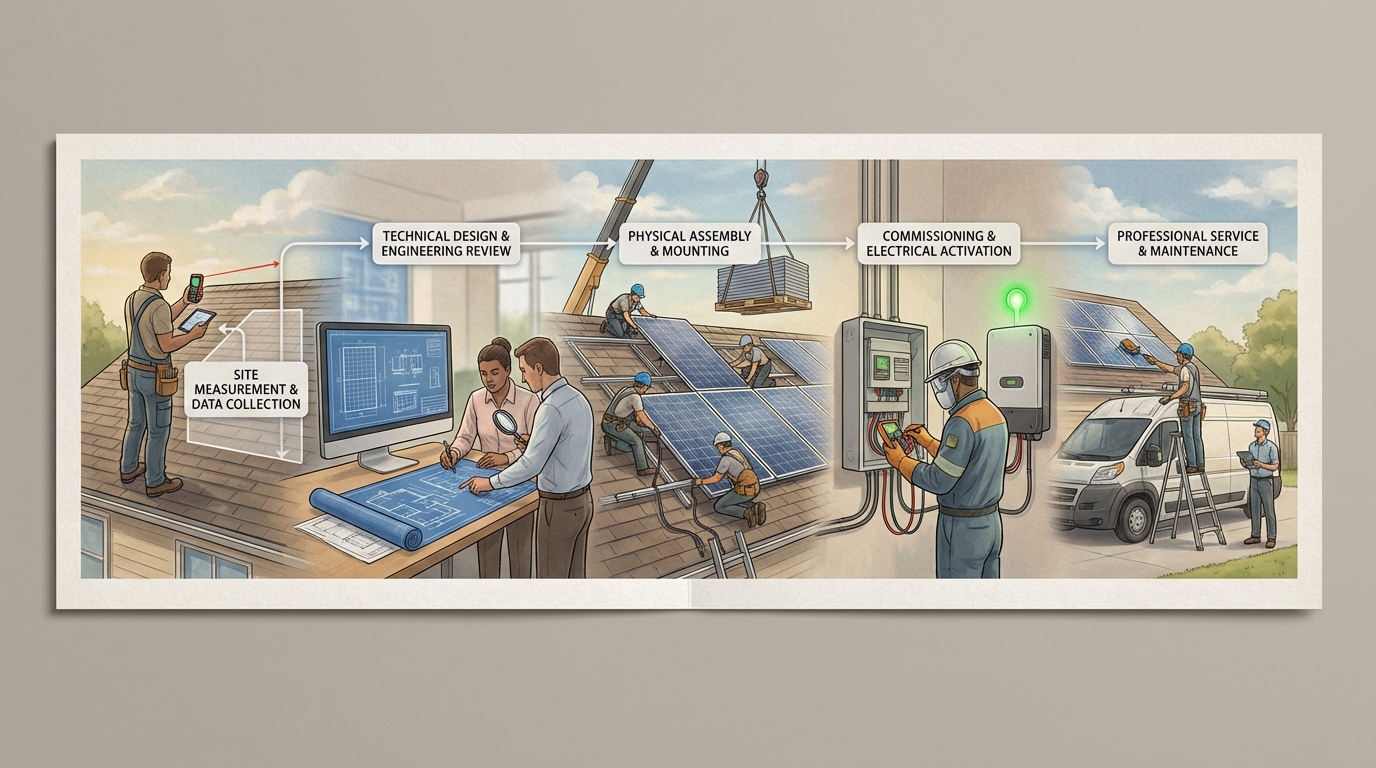 Fotovoltaika nemusí znamenat studium technických detailů. Dobrý dodavatel vám dá jasný plán, udělá projekt, instalaci i revizi – a hlavně: zůstane k dispozici, když budete něco potřebovat. Tenhle článek vám ukáže, jak celý proces probíhá od prvního telefonátu až po spuštění systému.