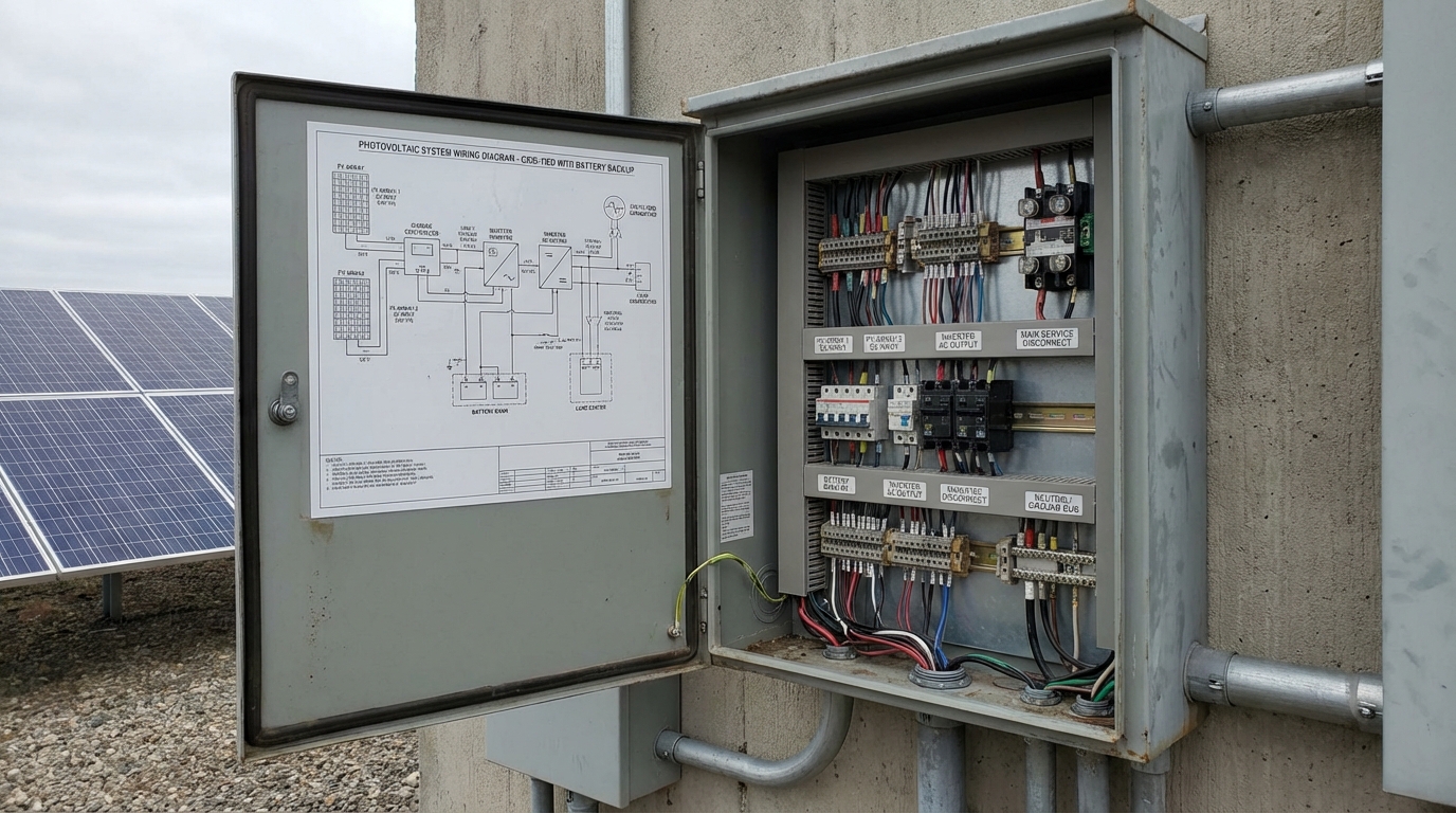 Rozvaděč je místo, kde se FVE systém potkává s domovní elektroinstalací. Technik sem zapojí výstup měniče a nastaví ochranné prvky – jistič, přepěťová ochrana a případně přepínač ostrovního provozu při výpadku sítě.